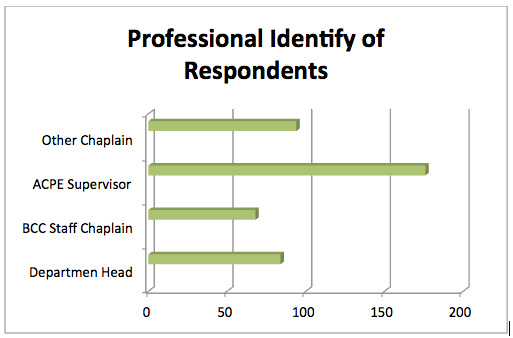 Figure 1 notes the identities of those who responded. There is some duplication of respondents, in that some department heads are both CPE Supervisors and APC Board Certified Chaplains.