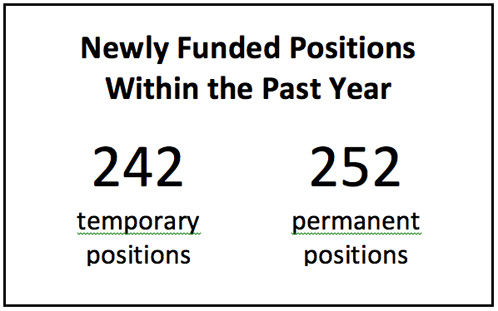 - From 242 responses, 197 temporary positions were reported to have been funded over the past three years.